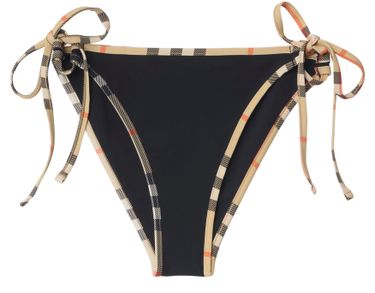 Reveal Burberry's check bikini bottom, offering a sleek silhouette and modern appeal. The streamlined design ensures comfort and style for poolside lounging or beach escapes, while subtle detailing elevates the overall look for a confident summer statement.