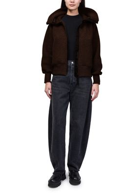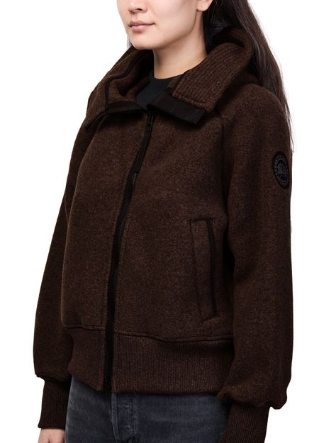 Reveal Canada Goose's Chilliwack fleece aviator jacket, a short bomber jacket crafted from warm fabric with a high neck and long sleeves. The zipper closure and two front pockets add practical flair, while its modern silhouette ensures effortless style for both casual and elevated looks.