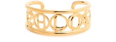 Reveal Chloe's gold finish cuff bracelet, a statement piece that blends refined logo details with a bold silhouette. This bracelet’s polished design and signature accents make it a standout addition to any modern jewelry collection, perfect for elevating your everyday style.