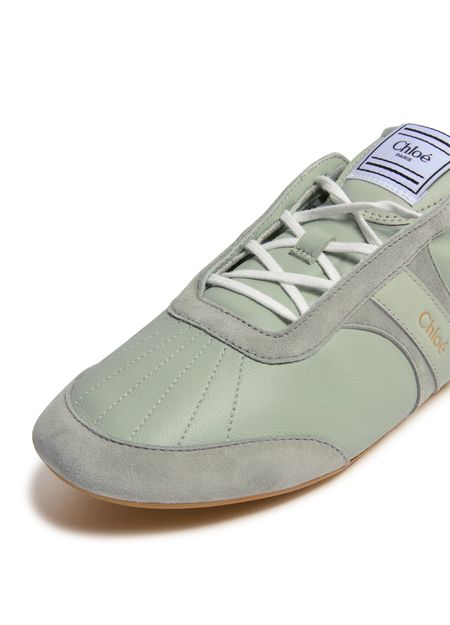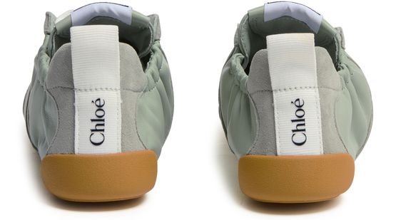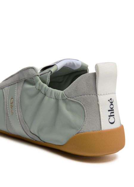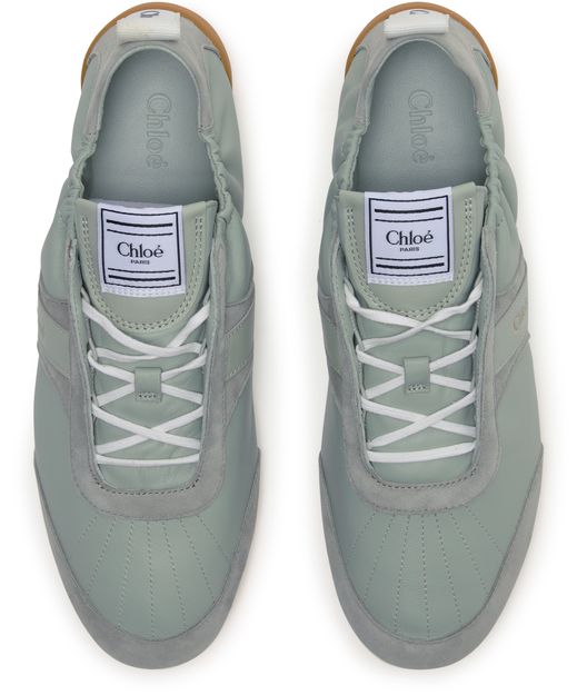 Reveal Chloe's Kick sneakers, crafted from smooth leather and suede for a refined finish. The round, closed toe and flat heel ensure comfort, while visible stitching and a contrasting sole add modern flair. Signature logos on the tongue, back, and side elevate these sneakers with unmistakable brand identity.