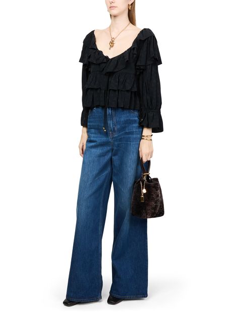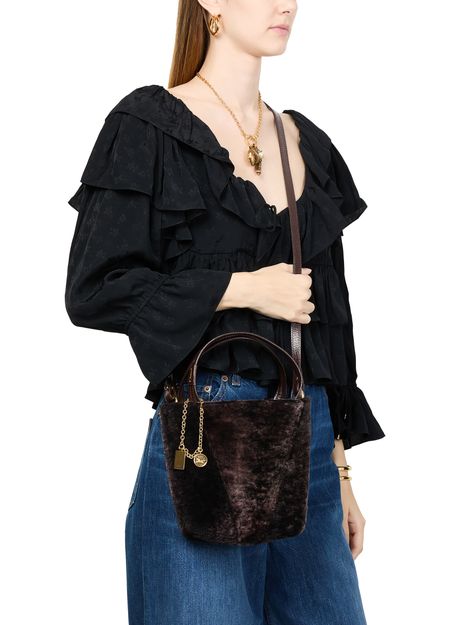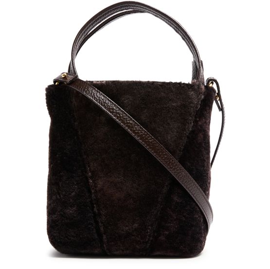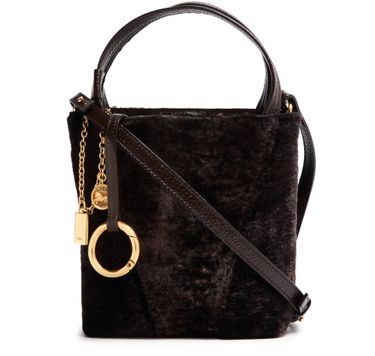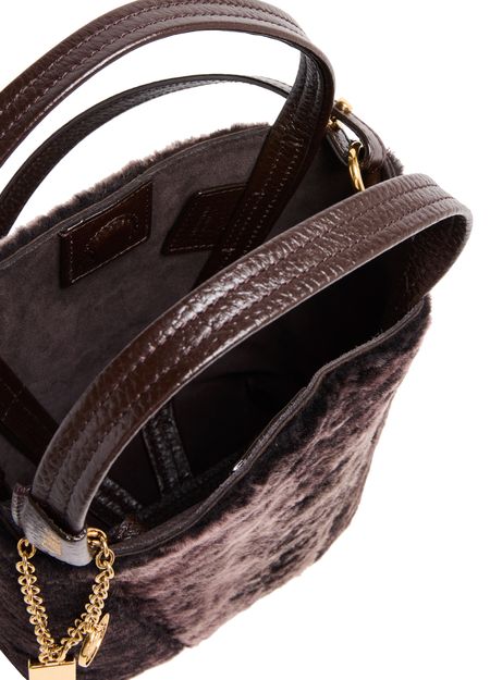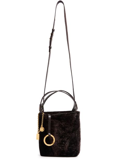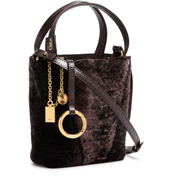Reveal Chloe's small Spin shearling tote bag, adorned with gold-tone charms on a delicate chain. The signature saddle stitch and gold logo add refined detail, while the adjustable thin strap and snap-button fastening offer both style and versatility for modern sophistication.