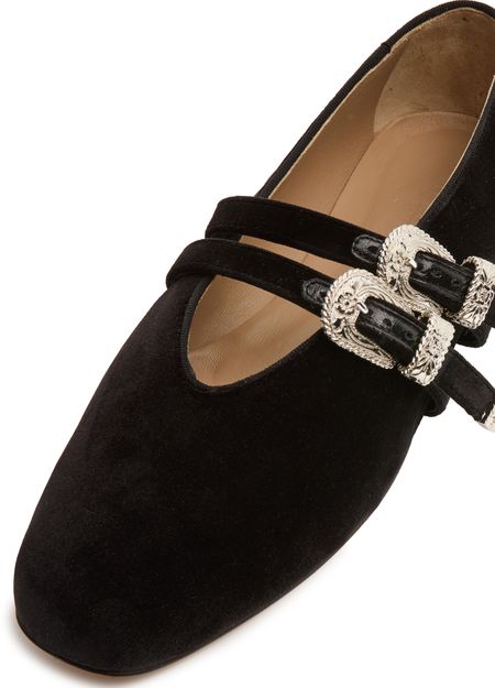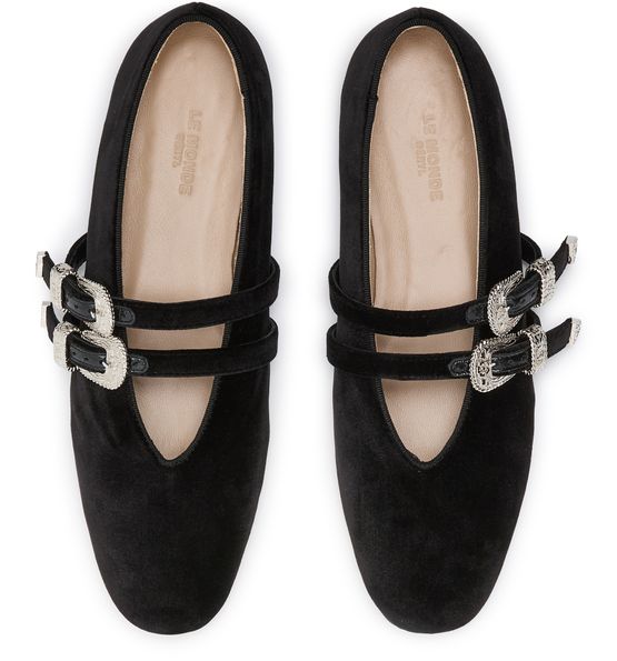 Reveal Le Monde Beryl's Claudia Mary-Jane ballet flats, crafted in supple suede with a pointed closed toe and a sleek flat heel. The buckled strap and signature engraved logo add a refined touch, while the silver finish and leather insole ensure both comfort and modern sophistication.