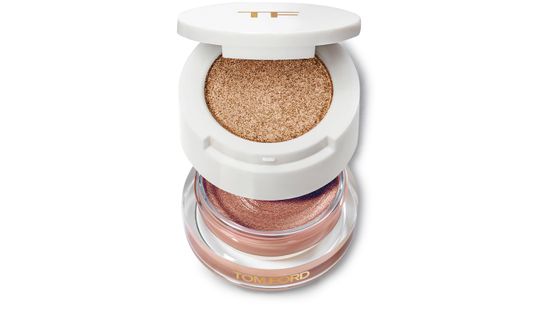 Tom Ford presents an innovative Cream and Powder Eye Color composed of two unique formulas: the lower section contains a luminous cream texture, and the second one holds an ultra-pigmented, shimmering powder.