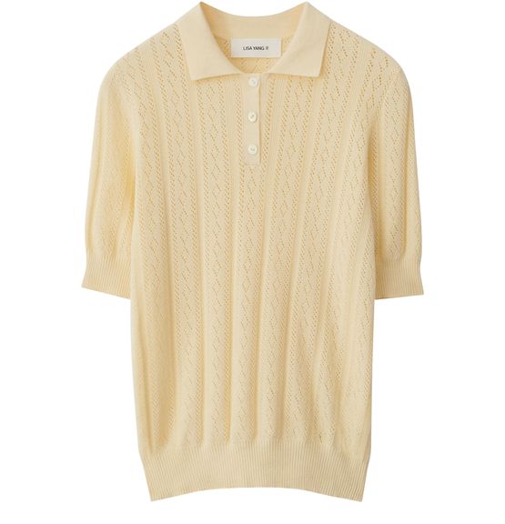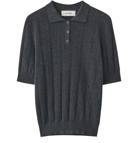 Reveal Lisa Yang's Cristine polo shirt, featuring a refined V-neck and short sleeves for a modern silhouette. The soft texture and clean lines make this top a versatile choice, easily styled for both casual and elevated looks. Perfect for updating your wardrobe with effortless sophistication.
