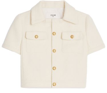 Celine's Cropped Chelsea jacket embodies timeless elegance with its classic fit and cropped length. Featuring a refined shirt collar and two patch pockets with flaps, it’s adorned with Celine blason press studs for a distinguished touch. Crafted in France, this jacket is a sophisticated addition to any wardrobe.
