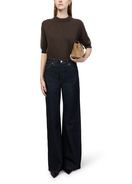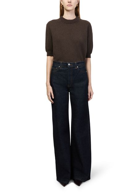 Reveal Khaite's Dane jeans, crafted from premium denim with a bootcut silhouette and ankle length for a refined look. The buttoned zipper closure, belt loops, and two front pockets add both function and style, while visible topstitched edges ensure a modern, polished finish.