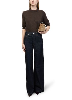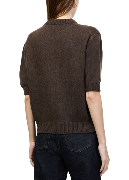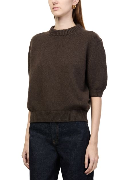 Reveal Khaite’s Davin sweater, made from luxurious cashmere with three-quarter cuffed sleeves for a refined silhouette. Its soft texture and tailored fit exude effortless sophistication, making it a versatile addition to any modern wardrobe.