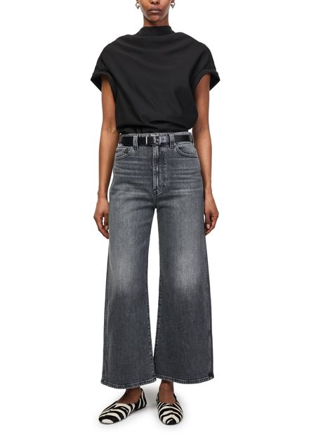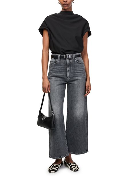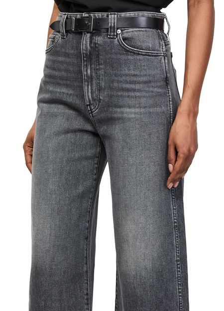 Reveal Khaite's Delina jeans, crafted with an ankle-length silhouette and finished with a buttoned zipper closure. Visible contrast stitching and belt loops add a refined touch, while two front pockets offer everyday practicality. These jeans blend comfort and modern elegance for versatile styling.