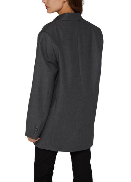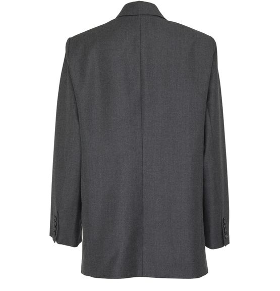 • Description : double-breasted, logo at the back label, notched collar, long, flap pockets, breast pocket, welt pockets, side pockets, long-sleeved.