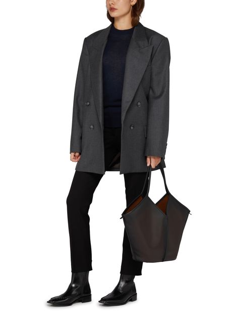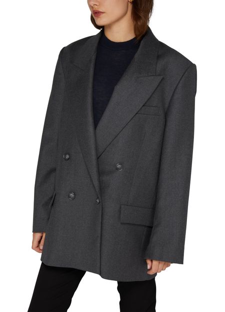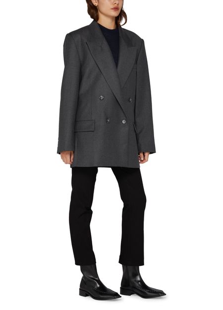 Rohe's double-breasted tailored jacket boasts a sophisticated notched collar and long sleeves, perfect for any occasion. Flap pockets and a breast pocket offer practicality, while welt and side pockets add style. The logo at the back label subtly showcases its quality, making it a timeless addition to your wardrobe.