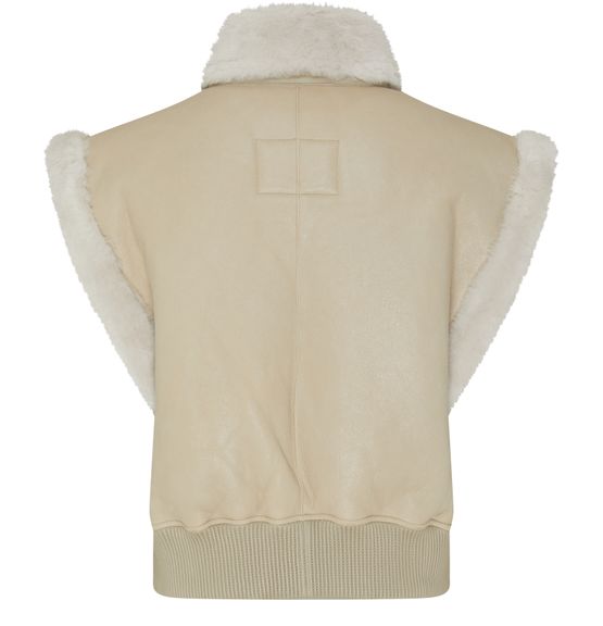 • Description : zipper closure, silver finish, logo at the back label, short, side pockets, sleeveless, leather & fur.