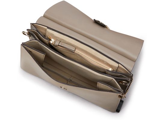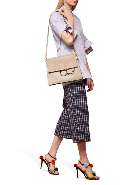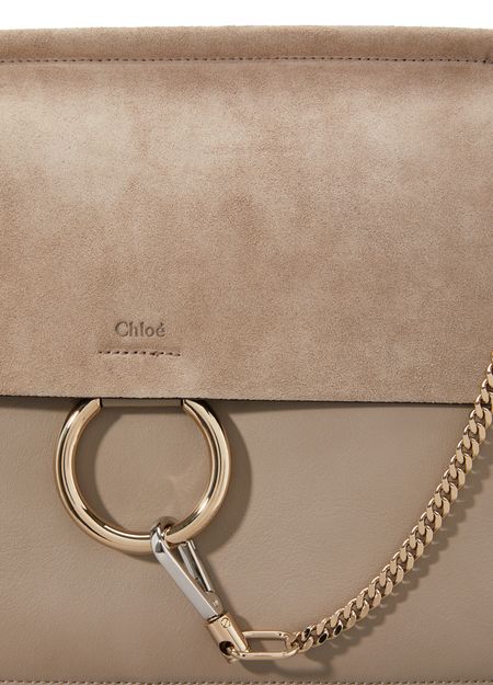 Chloé's emblematic piece, the Faye Suede and Smooth Calfskin Shoulder Bag, draws its inspiration from the graphic elegance of the 1970s. Recognizable by its ring clasp, a chain, and silver carabiner, this sleek bag adds style to your look. The adjustable and removable shoulder strap allows for a long or short look, on the shoulder or in the hand.