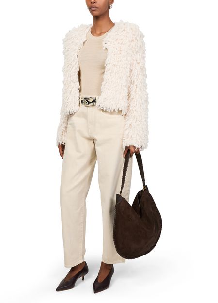 Reveal Isabel Marant's Fedra jacket, a chic addition to your knitwear collection. This regular fit piece features a round neck and long sleeves, enhanced by fringe details for a modern twist. Its cropped length makes it perfect for layering over your favorite outfits, adding a touch of elegance to any ensemble.