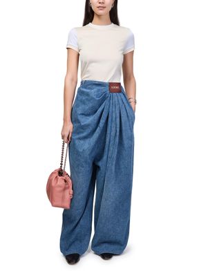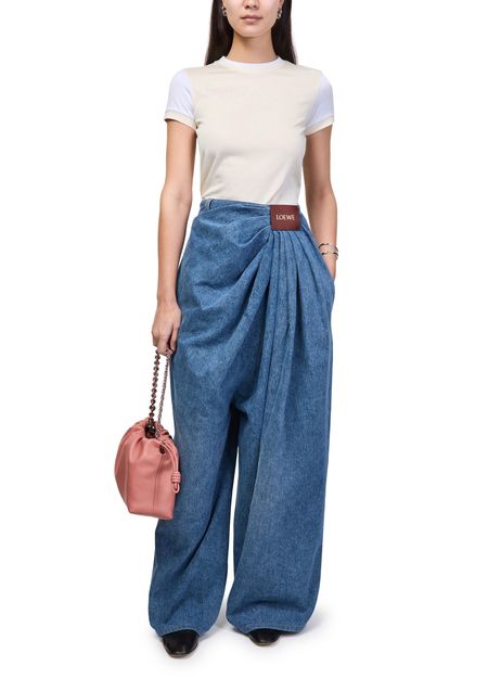 Reveal Loewe's fitted cotton and viscose t-shirt, featuring a crew neck and short sleeves for a sleek silhouette. The front is adorned with an embroidered logo, adding a refined touch. This versatile top pairs effortlessly with both casual and tailored looks, making it a modern wardrobe essential.