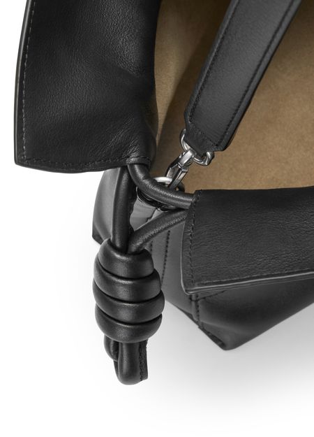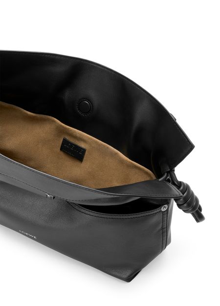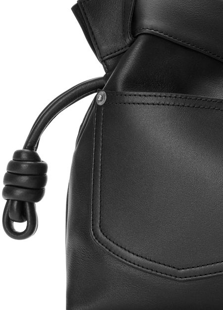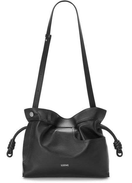 Reveal Loewe's Panta medium Flamenco clutch, crafted from smooth leather with visible stitching and a refined silver logo on the front. The drawstring closure and dual pockets blend modern design with practical elegance, while silver finishes add a sophisticated touch to this statement piece.
