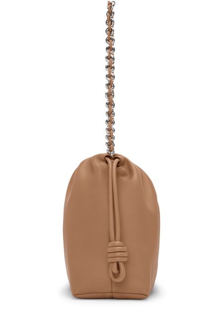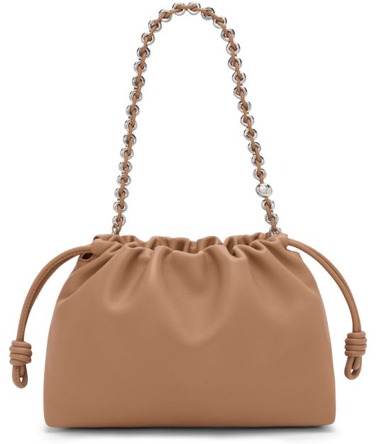 Reveal Loewe's medium Flamenco bag in mellow nappa lambskin, crafted from smooth leather with a refined chain strap. The drawstring closure and front logo add a modern touch, blending signature detailing with functional elegance for a statement shoulder bag.