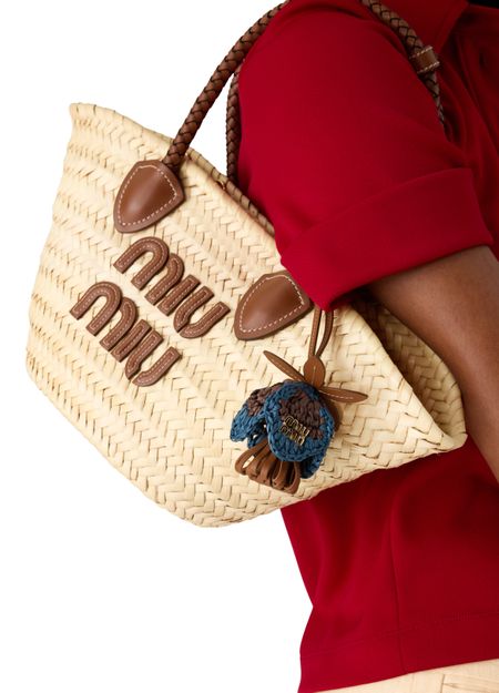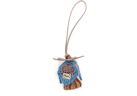 Discover Miu Miu's flower bag charm, a playful accent crafted with tassel details and a radiant gold finish. The front logo in gold letters adds a signature touch, while its versatile design lets you style it as a key holder or elevate your favorite bag with a hint of modern flair.