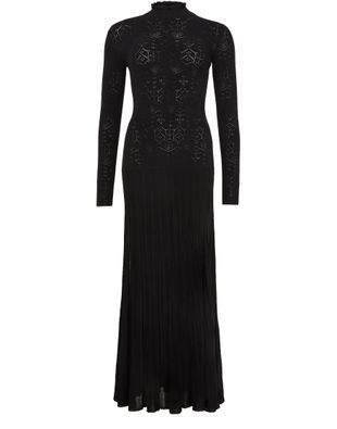 Isabel Marant's Gisole long dress showcases a striking maxi silhouette with an elegant high-neck and long-sleeved design. The fitted waist accentuates the figure, while the flowing a-line cut creates a graceful movement. Visible stitching adds a touch of artisanal charm, making this dress a standout choice for any occasion.
