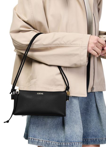 Reveal Loewe's Joya pouch in nappa calfskin, crafted from smooth leather with a single handle and gold-finish accents. The front logo in gold letters and visible stitching highlight refined artistry, while the zipper closure and single compartment offer sleek, functional organization.