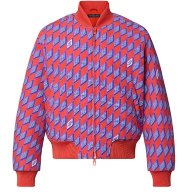 This graphic bomber features this season's Diamond Damier signature in bright saturated colors. Louis Vuitton signatures are discreetly incorporated into the motif. This lightly padded piece is made with a technical fabric and has a ribbed collar, cuffs and bottom hem.