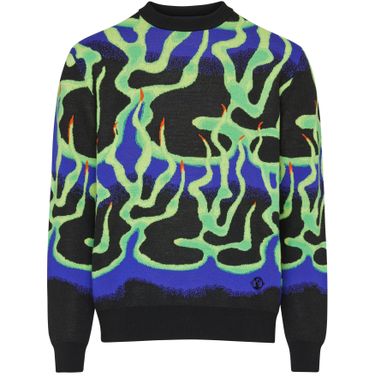 This standout crewneck sweater features an eye-catching abstract motif in a jacquard weave. Made from medium-weight merino wool, it has a ribbed collar, cuffs and hem and is signed with a round LV medallion on the front.