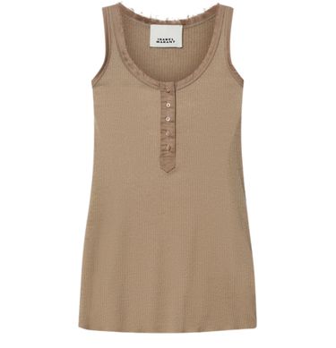 Reveal Isabel Marant's Helma buttoned vest top, featuring a refined round neck and a sleek front buttoned closure. The streamlined silhouette and subtle detailing make this top a versatile choice, easily paired with tailored trousers or casual denim for a polished, contemporary look.