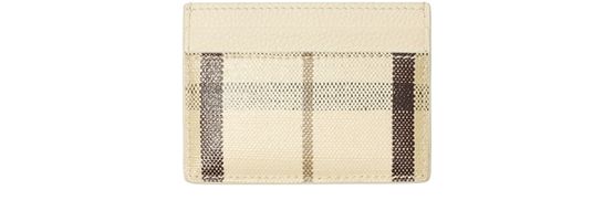 Reveal Burberry's check card holder, crafted from grained leather and adorned with the iconic equestrian knight emblem. The front logo and gold finish add a refined touch, while visible topstitching highlights the meticulous craftsmanship. This card holder blends timeless design with modern sophistication for everyday essentials.