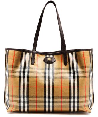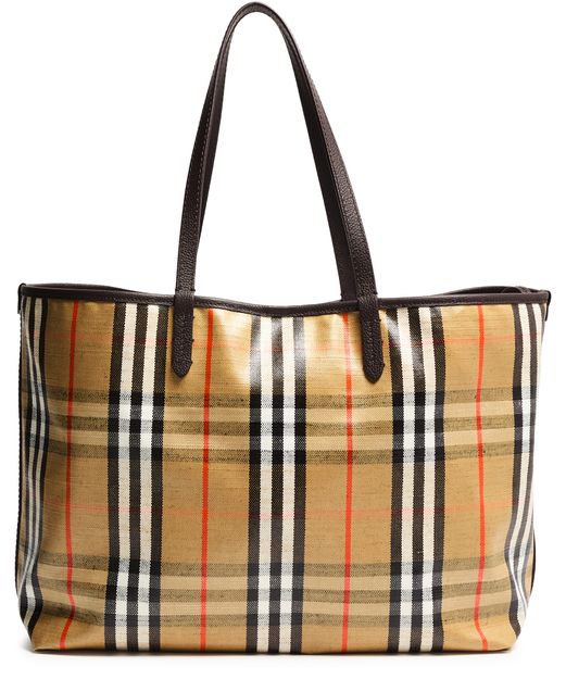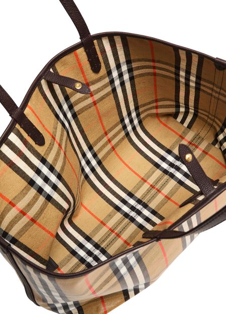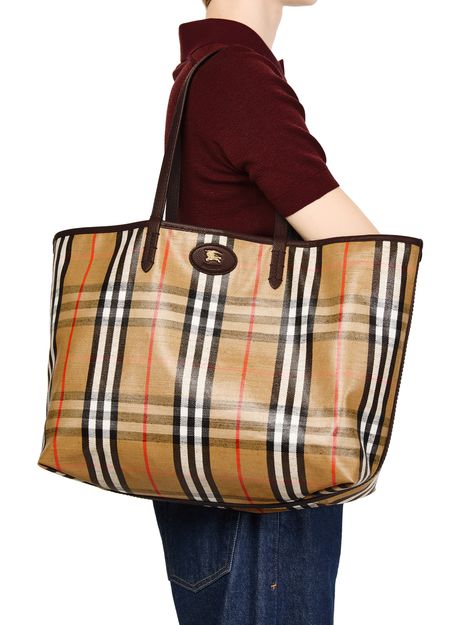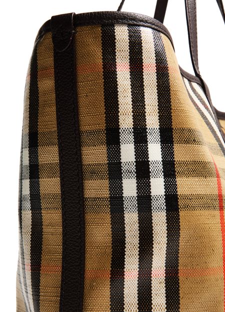 • Description : Shopper / tote bag, shoulder bag, burberry Check, knight Design Equestrian emblem, double handles, leather handle, front logo, snap-button fastening, visible topstitching, gold finish.