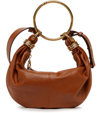 Chloé's Hobo bracelet bag showcases a stylish design with a secure zipper closure and a single compartment for essentials. Its gold finish adds a touch of elegance, while double handles and an adjustable strap allow for versatile wear. Interior patch pockets provide organization, complemented by visible topstitching for a refined look.