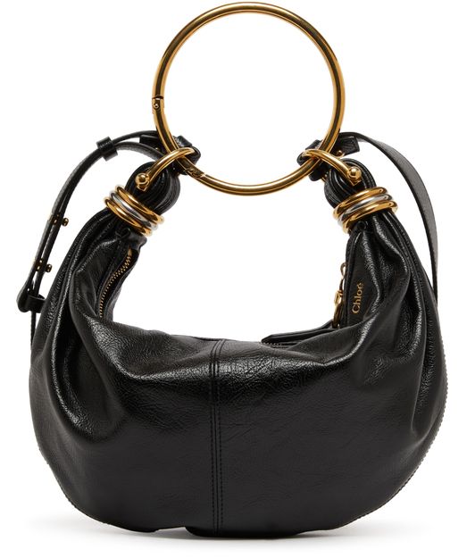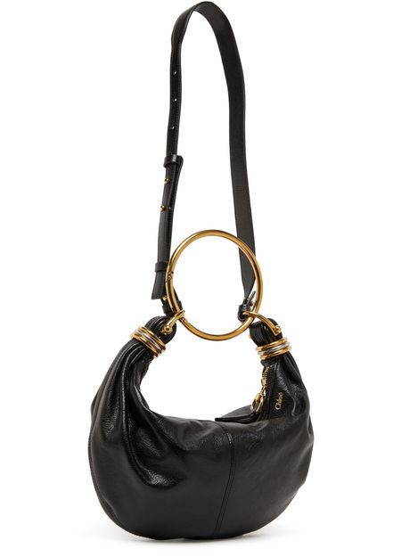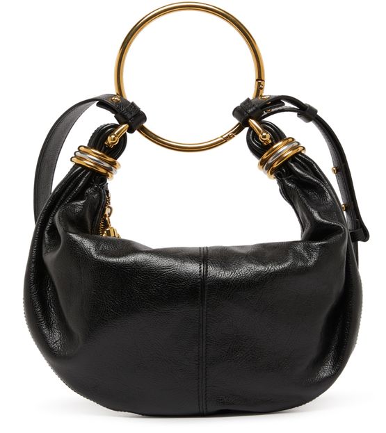 Chloé's Hobo bracelet bag showcases a stylish design with a secure zipper closure and a single compartment for essentials. Its gold finish adds a touch of elegance, while double handles and an adjustable strap allow for versatile wear. Interior patch pockets provide organization, complemented by visible topstitching for a refined look.