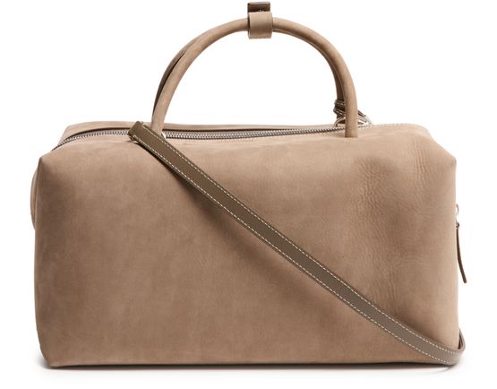 Reveal Max Mara's suede shoulder bag, crafted with double handles and a thin, adjustable strap for versatile wear. The front embossed logo and silver finish add a refined touch, while the spacious interior and secure zipper closure ensure both style and practicality for your daily essentials.