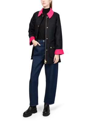 Introducing Barbour's Icons Modern Beadnell wax jacket, a regular fit piece that redefines casual elegance. This short, long-sleeved jacket features a button fastening and flap pockets, enhanced by an embroidered front logo. The contrast lining and topstitched edges add a refined touch, perfect for versatile styling.