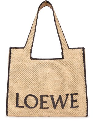 The Loewe Large tote bag is a spacious and versatile accessory designed for everyday use. With its large size and two sturdy handles, it offers ample room for all your essentials. The front logo adds a touch of sophistication, while the bag can be effortlessly worn in the hand or on the shoulder for added convenience.
