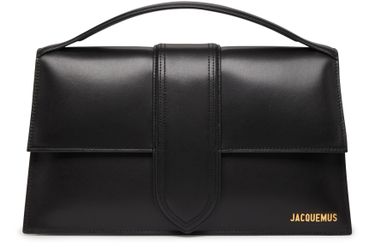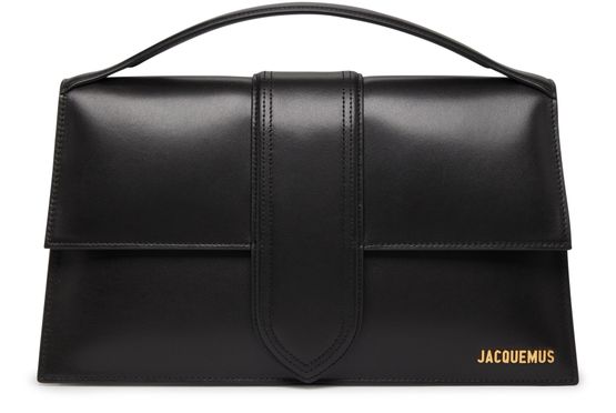 The Jacquemus Le Bambinou bag is a accessory that can be hand-carried or worn on the shoulder. It features a detachable strap and a leather handle for added convenience. The bag also has an interior pocket for storing small items. The metallic logo on the front and gold finishes add a touch of elegance to the design.