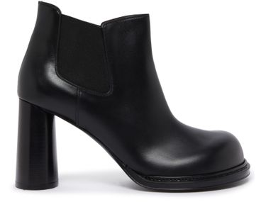 Discover the allure of Bottega Veneta's Leather heeled ankle boots. With a high-top upper and round toe, these closed chelsea boots showcase visible stitching and elasticated sides for a snug fit. The high heel elevates your style, making every step a statement of elegance and sophistication. Perfect for any occasion.