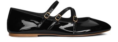 Celine's criss-cross babies ballerina in patent calfskin embodies effortless elegance. With a delicate almond toe shape and an adjustable triple strap adorned with Triomphe engraved buckles, these shoes offer both style and comfort. The lightly padded leather insole and stacked leather heel ensure a perfect fit, making them a timeless addition to any wardrobe.