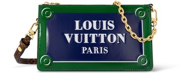 The Lexington Pouch is made from calf leather and features an all-over glossy print of a Parisian street-sign that says “Louis Vuitton Paris” in bold white letters. This zipped pouch offers a number of carry options thanks to a detachable chain and a removable, adjustable strap.