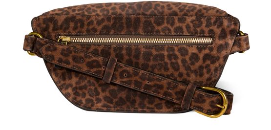 • Description : zipper closure, gold finish, single handle, leopard print, visible topstitching, adjustable strap, worn on the hips or on the waist, worn crossbody, thin strap.