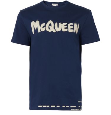 Alexander McQueen's t-shirt features a straight cut and a round neck for a classic, comfortable fit. The chest logo and logo on the front add a touch of brand recognition. This short-sleeved t-shirt is versatile and stylish, making it a must-have for any casual wardrobe.
