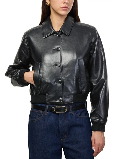 Reveal Citizens of Humanity's Lola leather bomber, crafted from smooth leather for a refined touch. The cropped silhouette and button fastening create a modern edge, while welt pockets and a lined interior add both function and comfort. Perfect for elevating any look, from day to night.