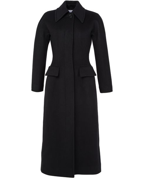 Reveal Alexander McQueen's long coat, a timeless piece crafted from warm fabric. This classic overcoat features a collar neckline, long sleeves, and a button fastening. Flap pockets add practicality, while its elegant design ensures versatility for any occasion.