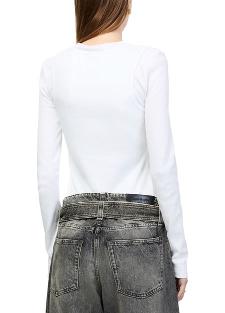 Reveal Acne Studios' layered t-shirt, featuring an embroidered logo on the front for a refined touch. Designed with a tank top-inspired outer layer, the soft fabric and classic silhouette make it a versatile piece.
