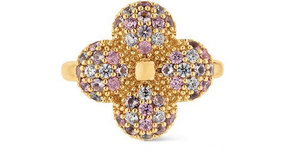 The sophisticated design of the Louisa ring is a showcase of refined craftsmanship. Mounted on a gold-tone metal band, a smoothly rounded Monogram Flower is finely encrusted with multicolored crystals. An eye-catching ring with an original signature look, it adds a glint of radiant elegance to any outfit.