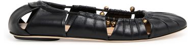 Chloé's Luna ballet flats showcase a sleek pull-on design for effortless elegance. The round toe and loafers style offer comfort, while visible stitching adds a touch of sophistication. A logo at the back enhances its charm, and the contrasting sole provides a stylish finish, making these flats a versatile wardrobe staple.