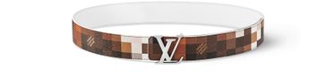 The iconic LV Initiales 40mm Reversible Belt is reinterpreted by Pharrell Williams with the Fall-Winter 2024 Show’s standout Cowmooflage motif. Printed on canvas in rich brown tones incorporating Marque L. Vuitton Déposé signatures, it can also be styled with a plain white leather side for a summery modern look. A palladium-colored LV buckle completes this fashion-forward design.