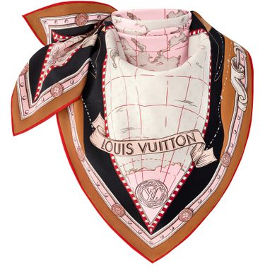 The all-silk LV Map 90 square celebrates Louis Vuitton’s travel heritage in a classic yet contemporary design. A world map in the form of a giant Monogram Flower is enhanced with miniature Monogram motifs on the oceans and compass-like LV Medallions for a sophisticated signature. A chic and versatile accessory, and an ode to adventure.