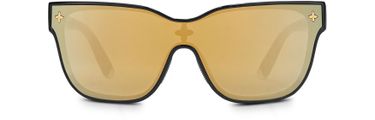 LV Shadow Square sunglasses offer a futuristic look. Reminiscent of the LV Snow ski goggles, the sleek and sporty shape is complemented by a striking mirror lens. Polished Monogram Flowers appear at the end pieces, temples and tips, while a pointed version provides a discreet detail behind the bridge.