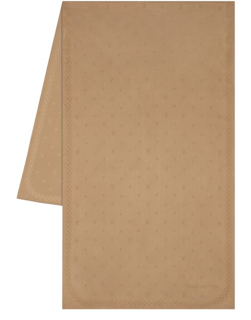The LV Spotlight stole is a versatile style that offers a fresh spin on a House signature. It features the iconic Monogram pattern, woven in tone-on-tone colors for a subtle aesthetic. This pure-silk piece has a satin effect that will enhance any ensemble when worn around the neck or as a headscarf.