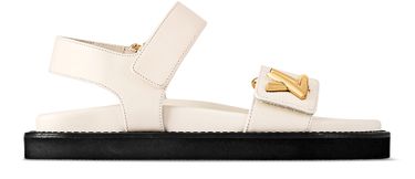 This version of the LV Sunset flat comfort sandal comes in extremely soft calfskin. This easy-to-wear style features two practical velcro straps, one of which is signed with a chunky, gold-tone LV accessory inspired by the clasp of the iconic Twist bag. A comfortable anatomic insole and lightweight micro outsole complete this design.