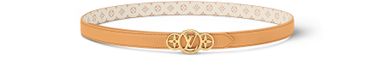 The slim and feminine LV Trio 20mm Reversible Belt offers an eye-catching new signature. Combining fine cowhide with Monogram Dune on the reverse side, its centerpiece is a spectacular gold-finish buckle featuring an LV Circle emblem flanked by two finely crafted Monogram Flowers. An elegant, versatile belt with an original House touch.